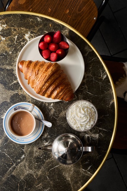 - שוקו חם וקצפת, גביע תותים וקרואסון חמאה ענק- 79₪